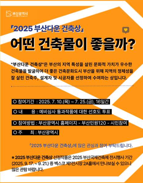 『2025 부산다운 건축상』선정을 위한 시민 참여투표 실시